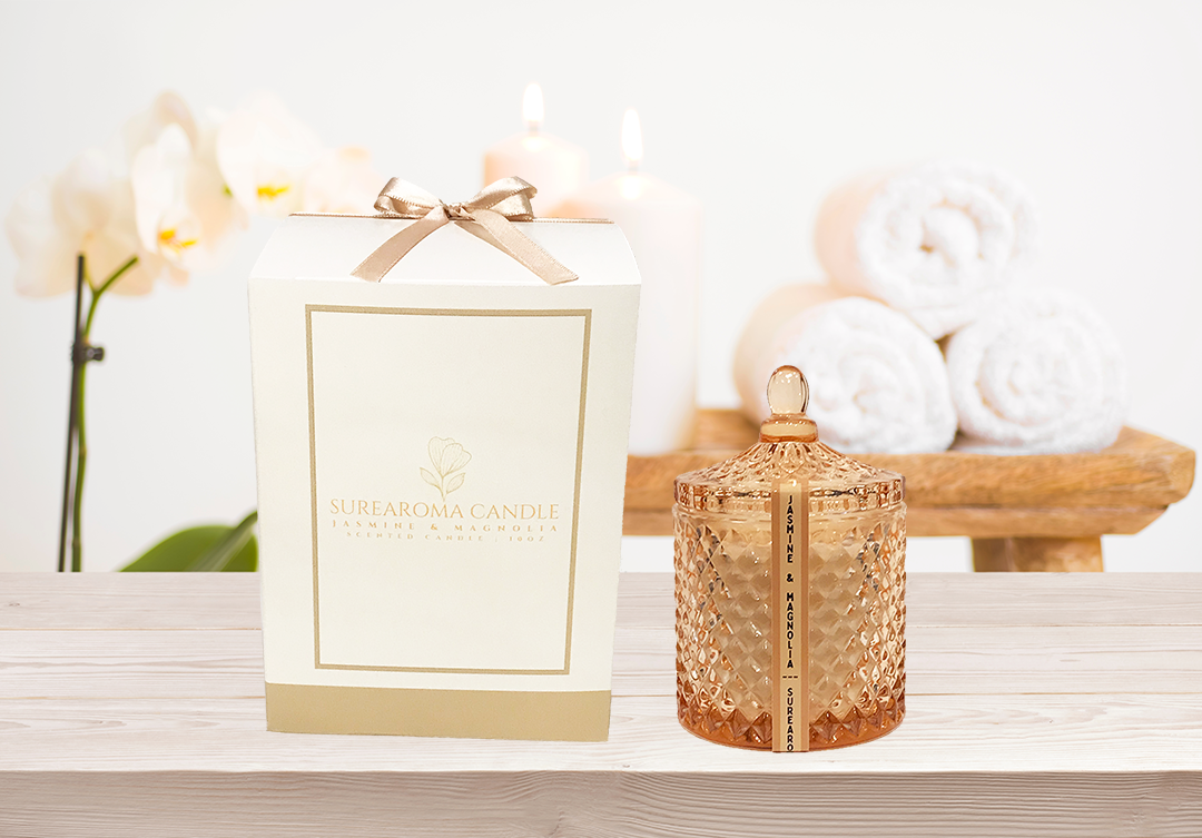 Jasmine & Magnolia scented candle - combines jasmine and magnolia fragrance oils. This luxury candle has a rich fragrance and would be a great addition to any room.